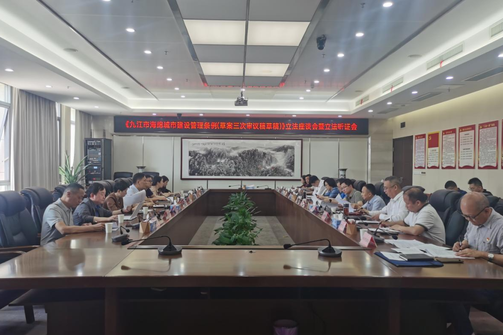 随着城市化进程加快,传统城市建设模式导致的“逢雨即涝、雨后即旱”问题日益突出,无法适应现代化城市要求。海绵城市建设的理念,强调通过生态化手段增强城市对雨水的吸纳、蓄渗和净化能力,成为解决城市内涝、水资源短缺和生态退化的重要途径。九江市作为长江中下游重要节点城市,兼具丰富的水系资源和复杂的地形条件,依法治水成为九江这座城市的一道必答题。制定《九江市海绵城市建设管理条例》(以下简称《条例》)是落实国家生态文明战略、提升城市韧性的关键举措,也是改善九江水环境、打造一座“会呼吸”城市的法治保障。《条例》已于2025年5月26日经九江市十六届人大常委会第二十九次会议通过,同年7月29日,江西省第十四届人大常委会第十七次会议批准。《条例》将于2026年3月1日起施行。